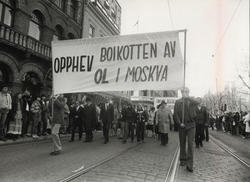 1. mai 1980, Oslo. Parole: Opphev boikot... Fotograf Ukjent – 1980