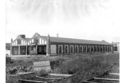 Vei forbi inngjerdet drivhusområde i Tøy... Fotograf Ukjent –