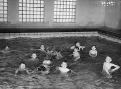 Ruseløkka skole, interiør, svømmehall, b... Fotograf Johnsen, Ragnar – 1950