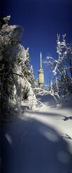 Nordberg kirke, snø Fotograf Ørnelund, Leif Krohn – 1963