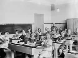Første skoledag på Majorstuen skole. Fotograf Holm, Guri d.e. – 1939