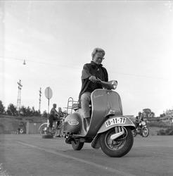 Økern torg, øvelseskjøring med scootere,... Fotograf Dagbladet – 1959